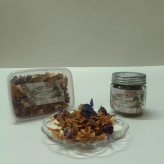 این دمنوش ترکیب خاصی دارد که بسیار خوش عطر و طعم میباشد و در رفع خستگی بسیار موثر است این ترکیب شامل ریشه زعفران ، به ، دارچین ،گل محمدی،سیب،پرتقال و... میباشد