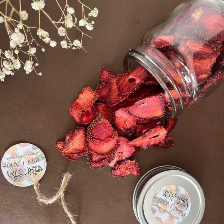 توت فرنگی خشک آداس تولید شده از توت فرنگی های تازه و درجه یک بدون هیچ گونه افزودنی بسیار خوش طعم و تازه تولید روز